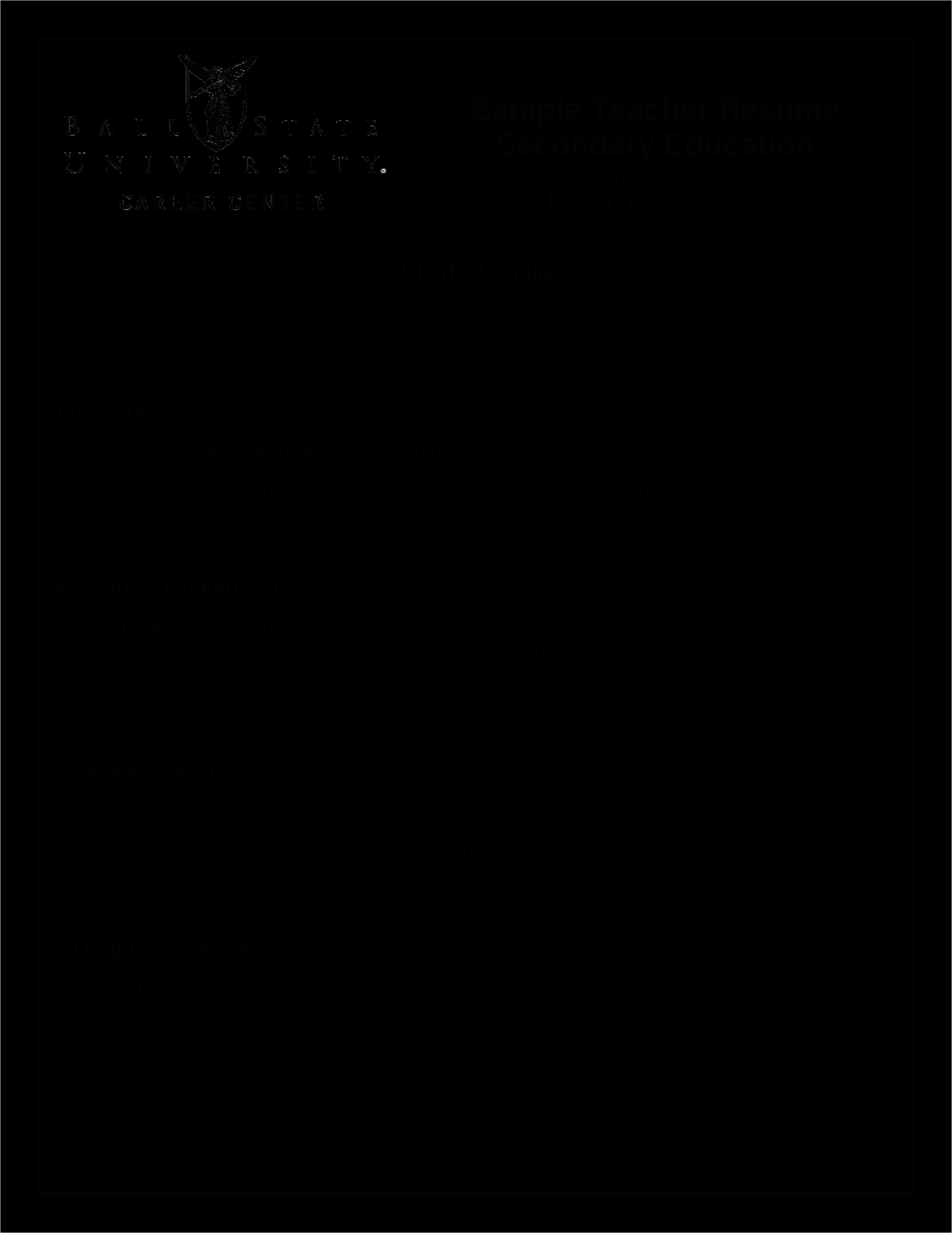 New High School Teacher Resume
