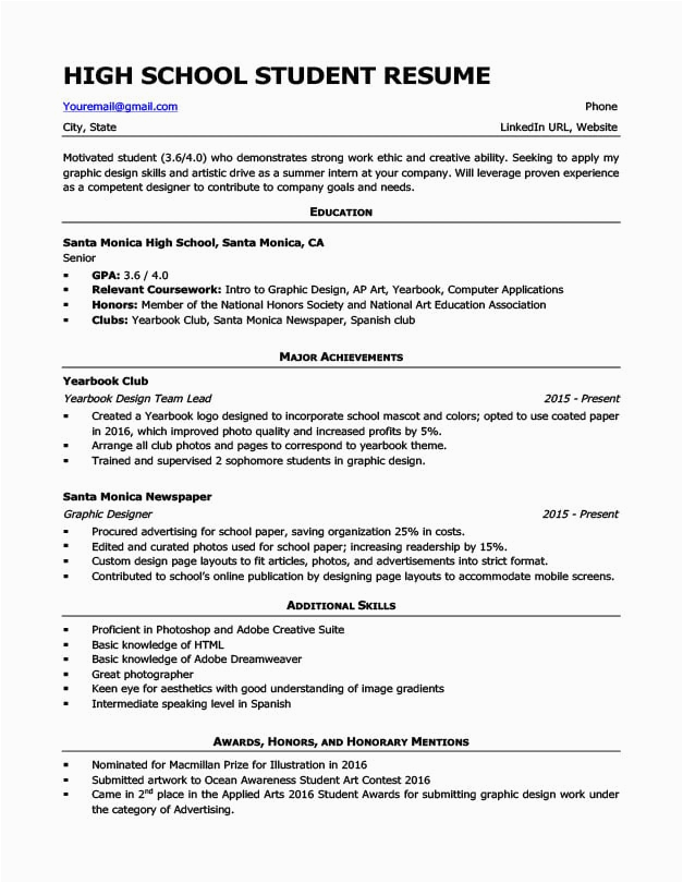 Do you have a friend or relative who has a job you idolize and a fine grasp of how to format and create a resume? Why not ask them to see the resume that they used, and use that for your high school education on resume sample?