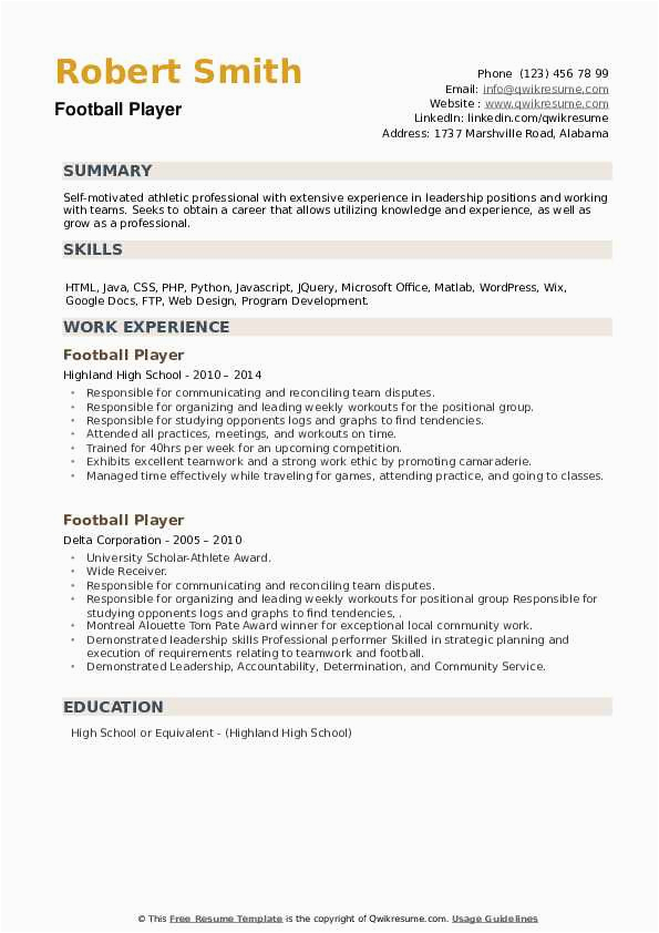 9 photos of the High School Football Player Resume Samples