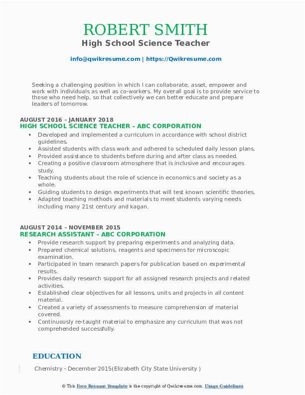 There are as a result many options for you as you search for the absolute high school science teacher resume samples, and bearing in mind some difficult accomplishment and perseverance on your part, you will locate yourself bearing in mind a first-class resume in no time, and hopefully, a first-class employer, as well!. For more counsel upon resumes or for a high school science teacher resume samples checkout this recommended websites.