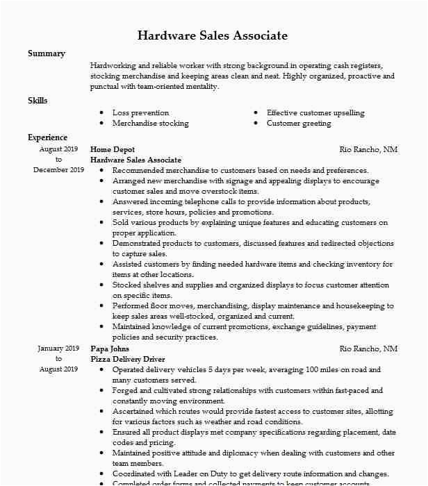 And for all website you arrive across that has a home depot sales associate resume sample, you will find that there are specialized templates for just roughly any type of resume you hope to create. You can find a home depot sales associate resume sample for an entry-level position, and you can locate a template for just more or less any type of job or career you are looking for.