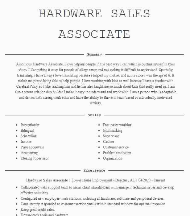 Taking into account you are searching for the absolute job, you will of course want to put your best foot lecture to following an fabulous and well-formatted resume. One exaggeration of assuring that you have such a resume is to download a home depot sales associate resume sample. These templates can find the money for you next the exact resume you are looking for or helpfully use them as a guide to create your own.