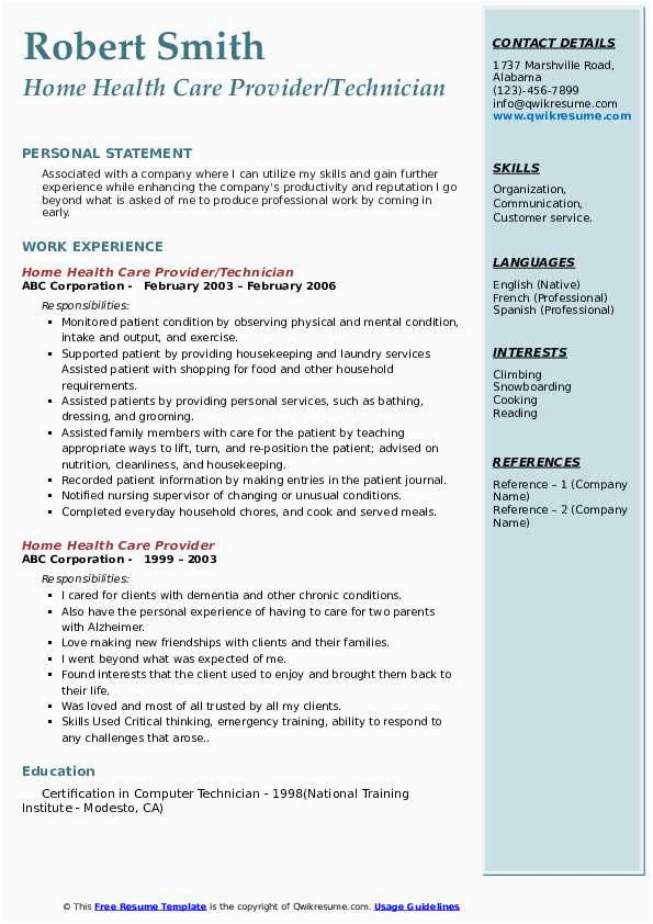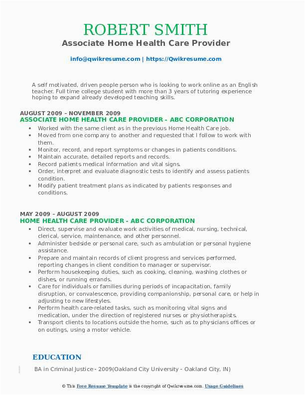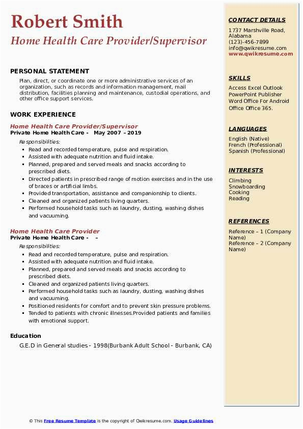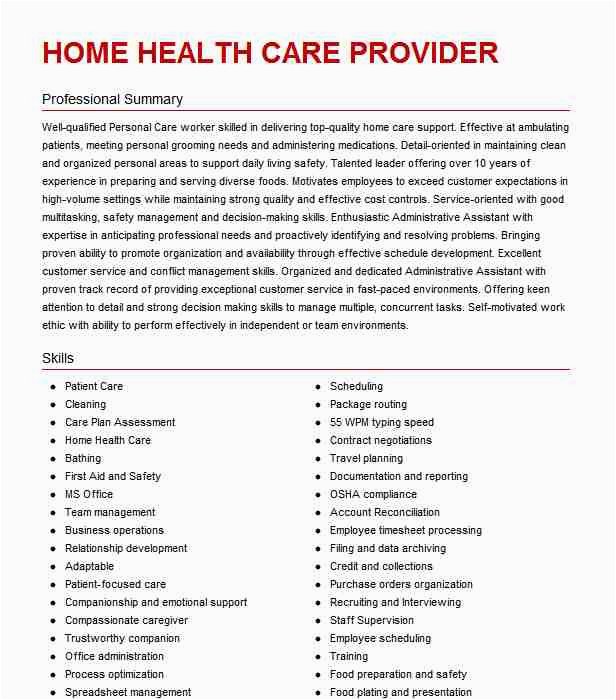 in the same way as you are searching for the perfect job, you will of course desire to put your best foot take up in the same way as an fabulous and well-formatted resume. One exaggeration of assuring that you have such a resume is to download a home health care provider resume sample. These templates can pay for you with the correct resume you are looking for or helpfully use them as a guide to make your own.