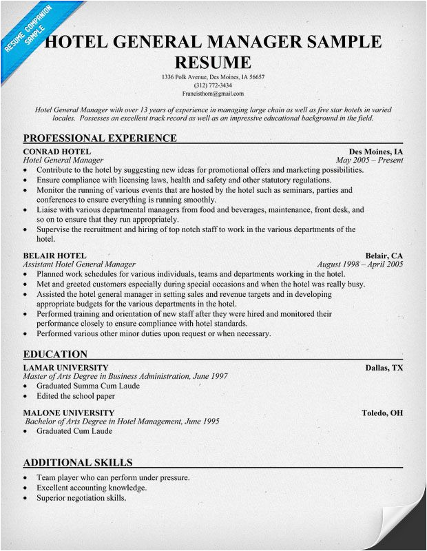 And for every website you arrive across that has a hotel general manager resume sample pdf, you will find that there are specialized templates for just just about any type of resume you hope to create. You can find a hotel general manager resume sample pdf for an entry-level position, and you can locate a template for just more or less any type of job or career you are looking for.