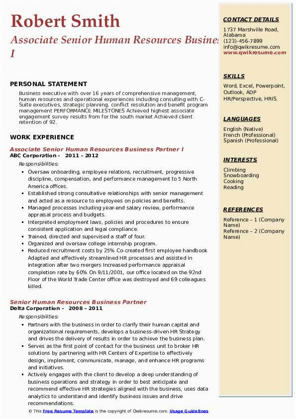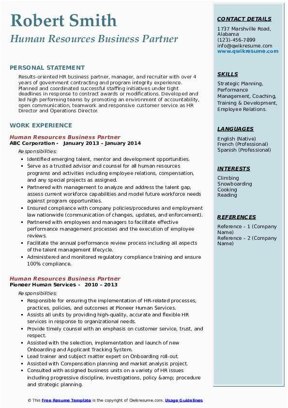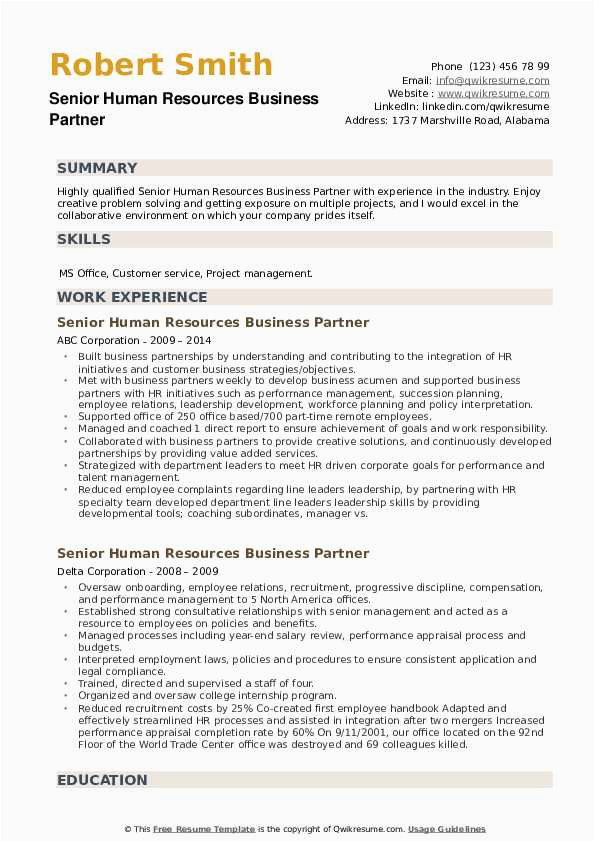 The uses of human resources business partner resume templates downloads are something like limitless! You are bound to find the absolute template that will keep you time, have enough money you a professional appearance, and depart a lasting ventilate to home the interview.