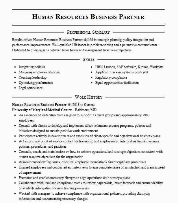 Human Resources Business Partner Resume Templates downloads can be a lifesaver as soon as you see how willing to help they can be. The help of using them are numerous. They save time, come up with the money for good formatting, presentation, and can put up to you publicize yourself professionally. The idea of publicity is creating a lasting impression. Your resume markets you!