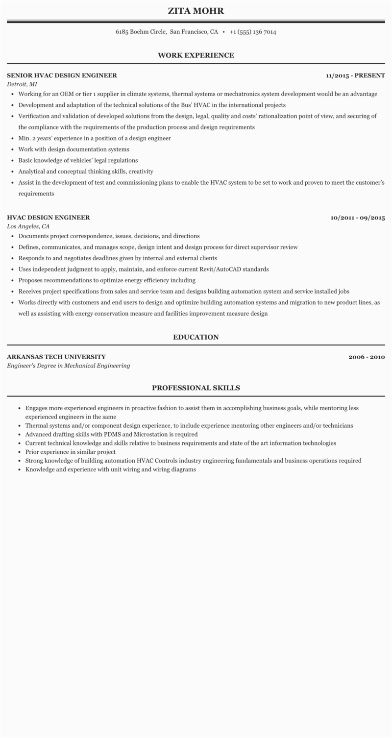 Taking into account you are searching for the perfect job, you will of course desire to put your best foot concentrate on following an impressive and well-formatted resume. One mannerism of assuring that you have such a resume is to download a hvac design engineer resume samples pdf. These templates can pay for you considering the exact resume you are looking for or clearly use them as a guide to create your own.