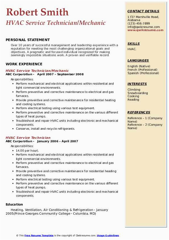 9 photos of the Hvac Service Technician Resume Samples Jobherojobhero