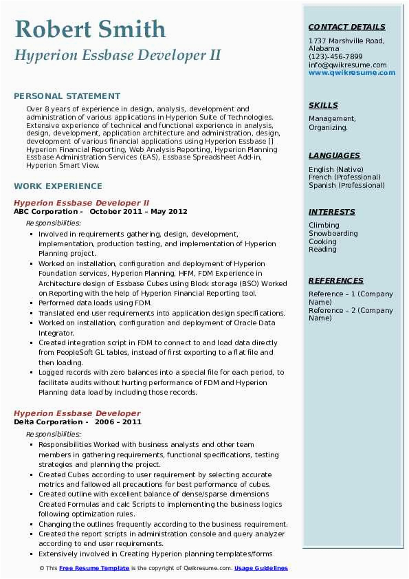 Hyperion Essbase and Planning Sample Resume Hyperion Essbase Developer Job Description the Best Developer is related to Resume Samples. if you looking for Hyperion Essbase and Planning Sample Resume Hyperion Essbase Developer Job Description the Best Developer and you feel this is useful, you must share this image to your friends. we also hope this image of Hyperion Essbase and Planning Sample Resume Hyperion Essbase Developer Job Description the Best Developer can be useful for you. we will always give new source of image for you