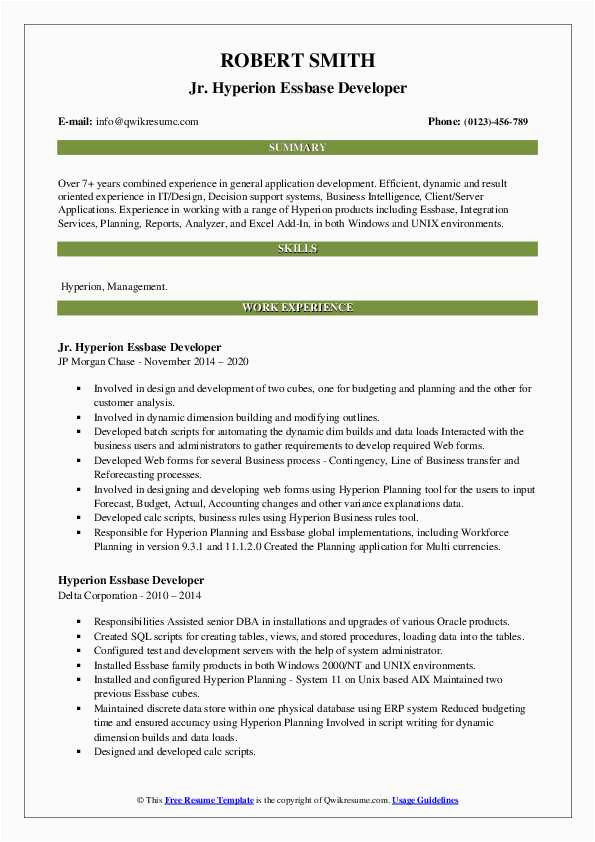 Hyperion Essbase and Planning Sample Resume Hyperion Essbase Developer Job Description the Best Developer and all other pictures, designs or photos on our website are copyright of their respective owners. we get our pictures from another websites, search engines and other sources to use as an inspiration for you. please contact us if you think we are infringing copyright of your pictures using contact page. we will be very happy to help you.