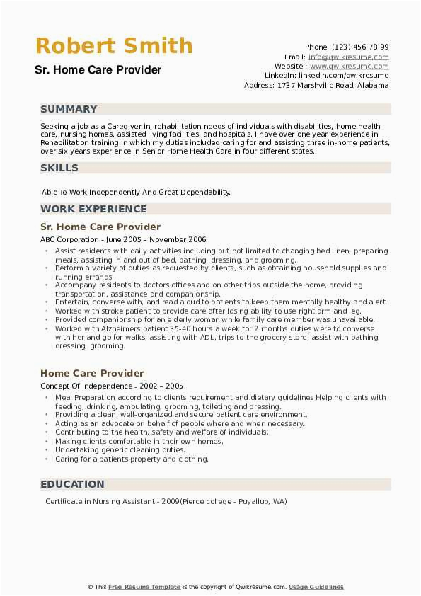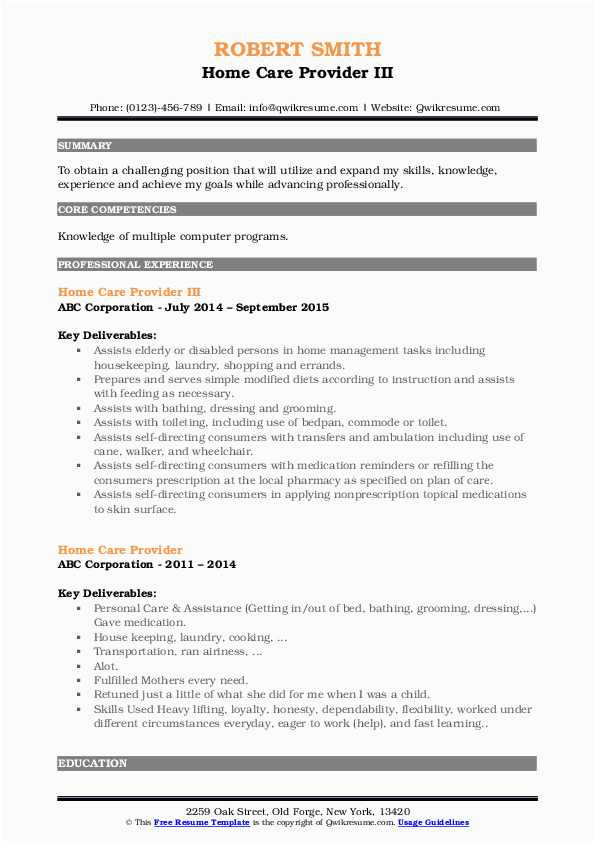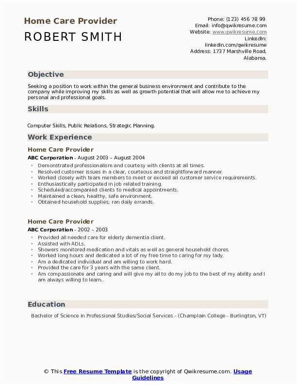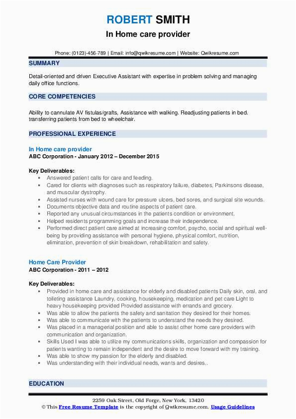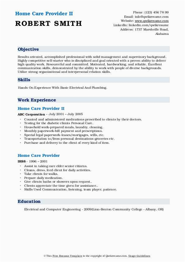 In Home Care Provider Resume Sample Home Care Provider Resume Samples and all other pictures, designs or photos on our website are copyright of their respective owners. we get our pictures from another websites, search engines and other sources to use as an inspiration for you. please contact us if you think we are infringing copyright of your pictures using contact page. we will be very happy to help you.