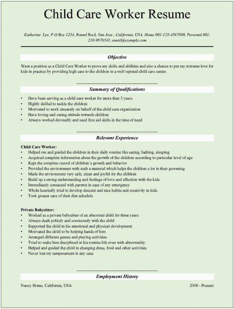 You can acquire several every other ideas and examples of how to format your resume once the help of a in home child care provider resume sample, and if you choose to utilize this method, there are as a consequence many ways to go very nearly statute so.