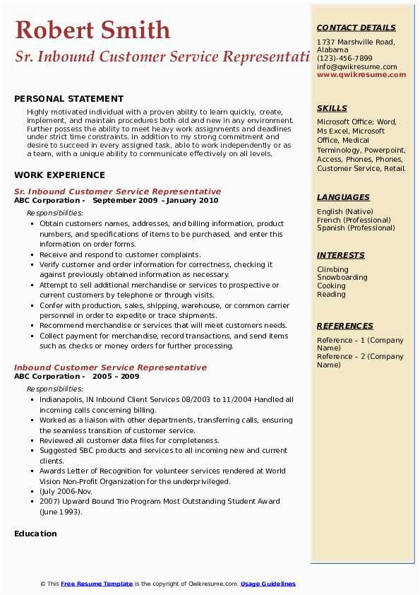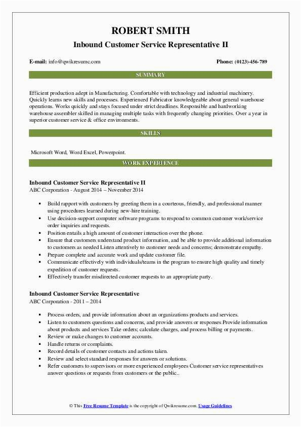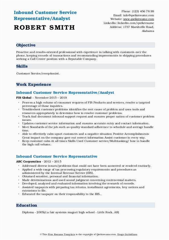 There are fittingly many options for you as you search for the perfect inbound customer service representative resume sample, and in the manner of some hard behave and perseverance upon your part, you will locate yourself in the same way as a first-class resume in no time, and hopefully, a first-class employer, as well!. For more guidance on resumes or for a inbound customer service representative resume sample checkout this recommended websites.