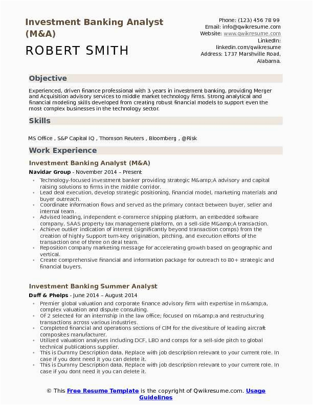 And for all website you arrive across that has a investment banking business analyst sample resume, you will locate that there are specialized templates for just not quite any type of resume you hope to create. You can find a investment banking business analyst sample resume for an entry-level position, and you can find a template for just practically any type of job or career you are looking for.