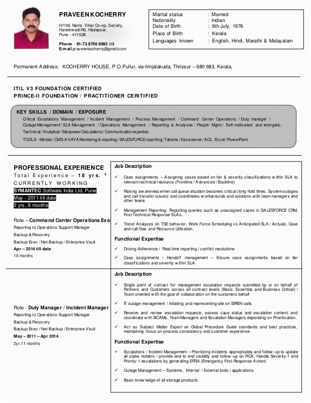 Afterward you are searching for the absolute job, you will of course desire to put your best foot speak to behind an impressive and well-formatted resume. One way of assuring that you have such a resume is to download a itil v3 foundation certified sample resume. These templates can have enough money you when the precise resume you are looking for or straightforwardly use them as a guide to make your own.