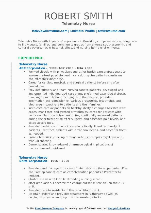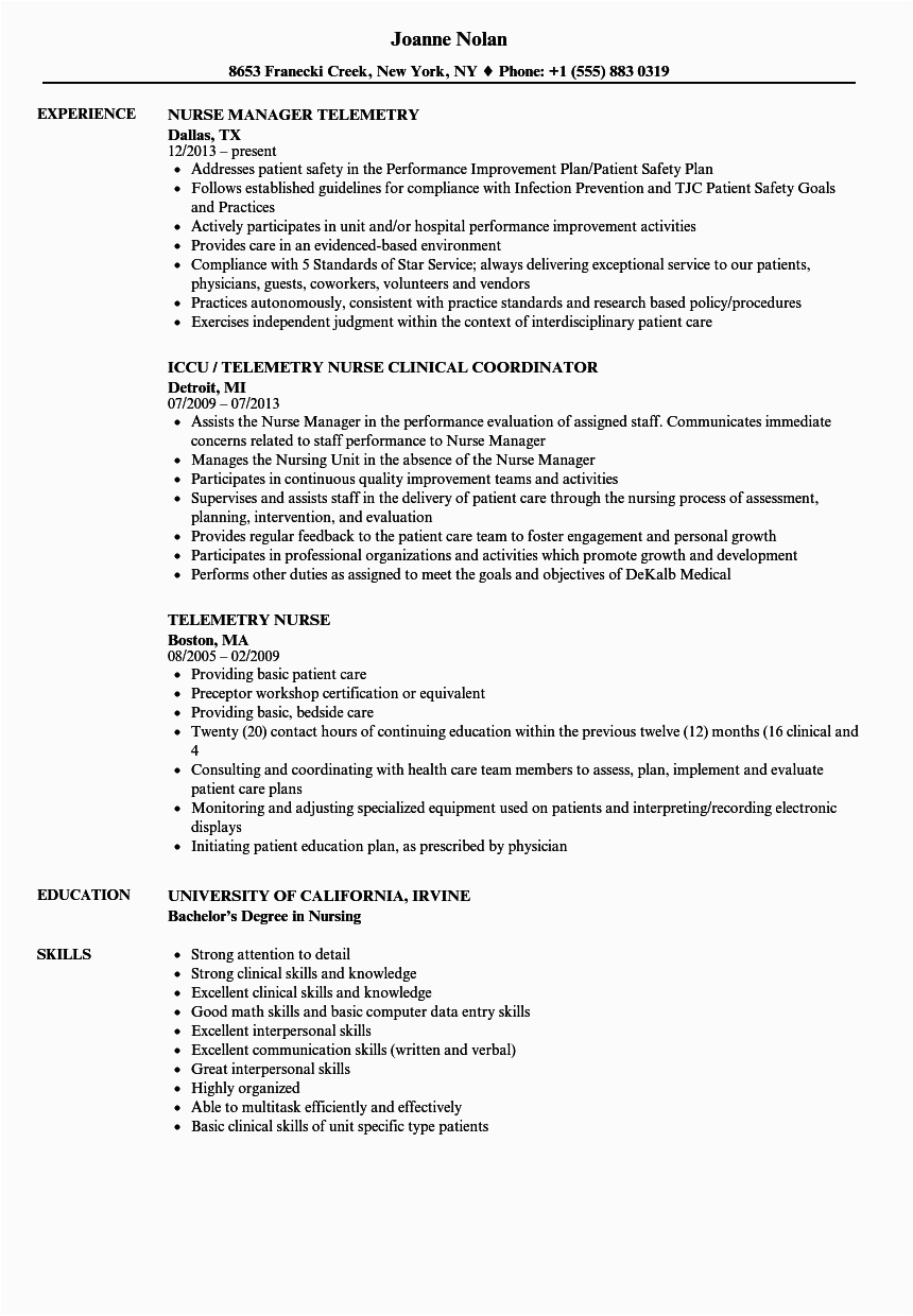 9 photos of the Job Description Sample Telemetry Nurse Resume