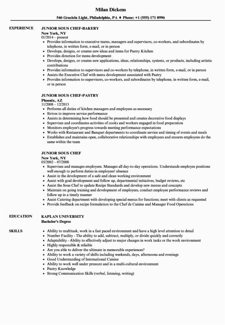 9 photos of the Jobhere Junior sous Chef Sample Resume