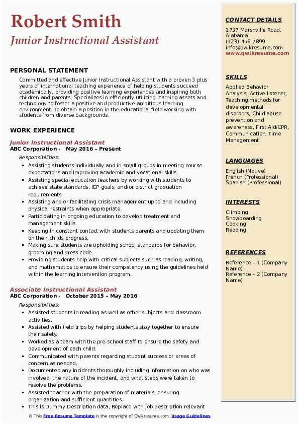 9 photos of the Jr High School Teacher assistant Resume Sample