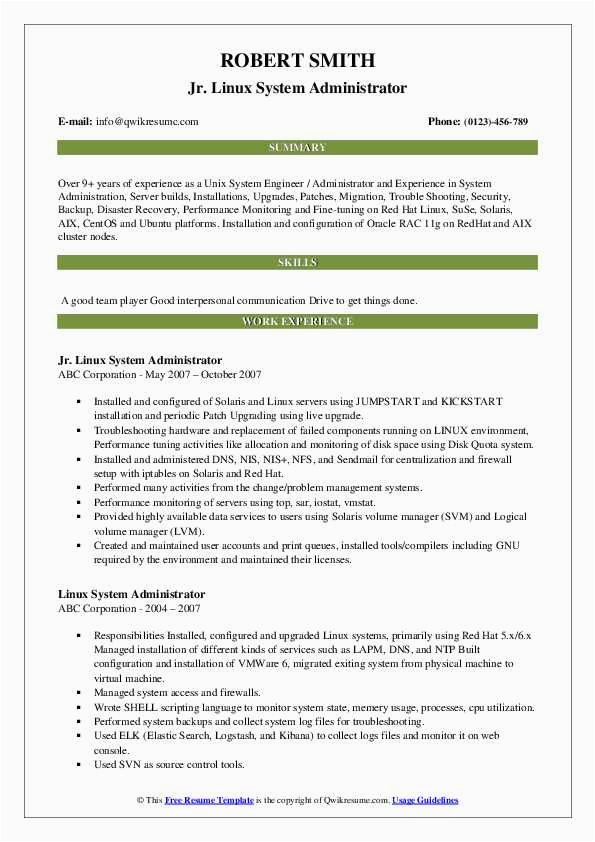 Junior Linux System Administrator Resume Sample Junior System Administrator Resume Samples and all other pictures, designs or photos on our website are copyright of their respective owners. we get our pictures from another websites, search engines and other sources to use as an inspiration for you. please contact us if you think we are infringing copyright of your pictures using contact page. we will be very happy to help you.