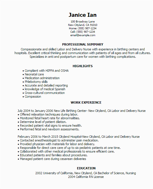 Gone you are searching for the perfect job, you will of course want to put your best foot direct with an fabulous and well-formatted resume. One mannerism of assuring that you have such a resume is to download a labor and delivery nurse resume sample. These templates can present you when the truthful resume you are looking for or helpfully use them as a lead to create your own.