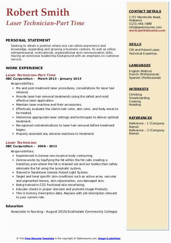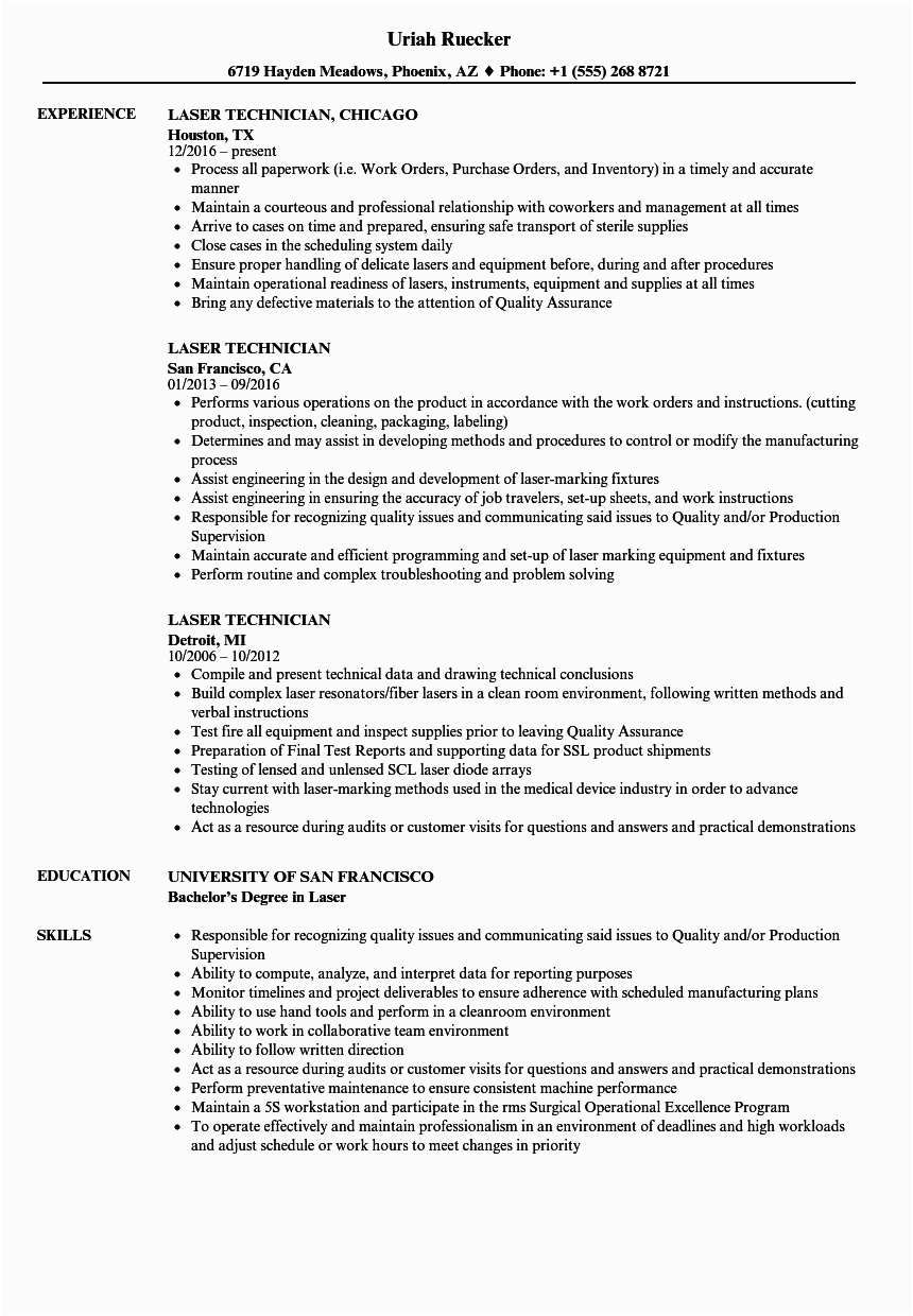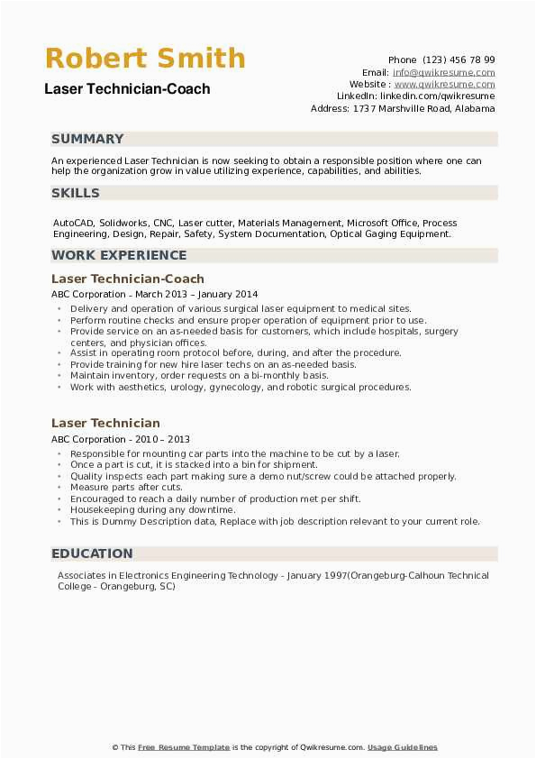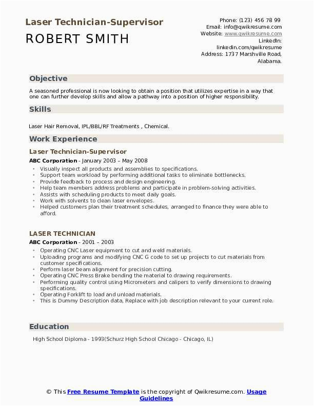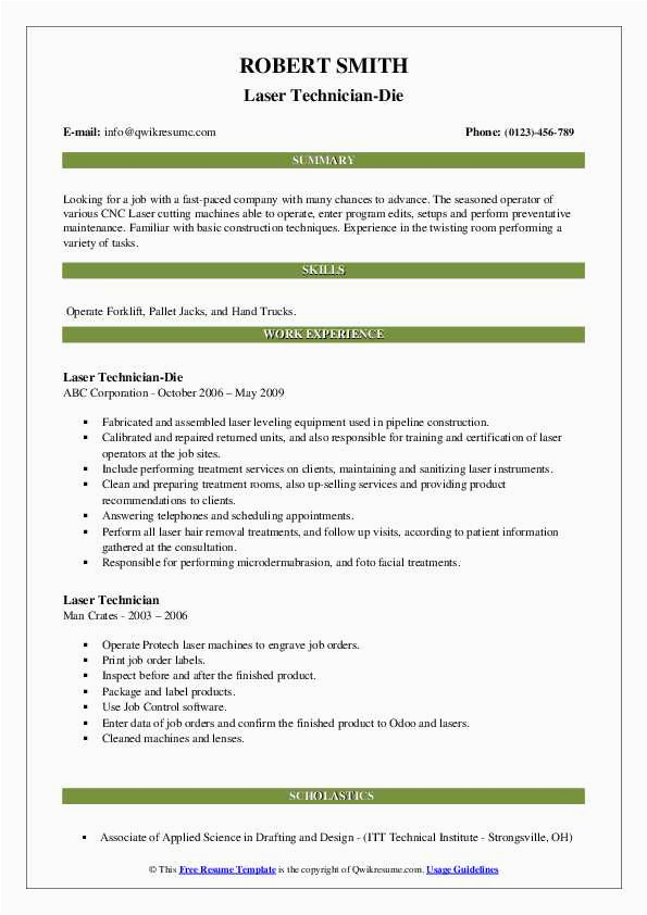 Laser Hair Removal Technician Resume Sample Laser Technician Resume Samples and all other pictures, designs or photos on our website are copyright of their respective owners. we get our pictures from another websites, search engines and other sources to use as an inspiration for you. please contact us if you think we are infringing copyright of your pictures using contact page. we will be very happy to help you.