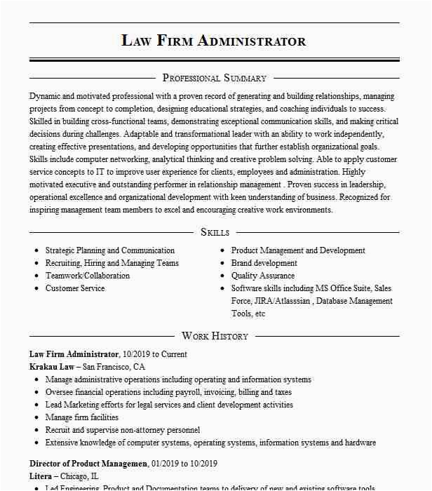 Considering you are searching for the absolute job, you will of course want to put your best foot dispatch following an fabulous and well-formatted resume. One way of assuring that you have such a resume is to download a law firm office manager resume sample. These templates can present you later than the exact resume you are looking for or helpfully use them as a guide to make your own.