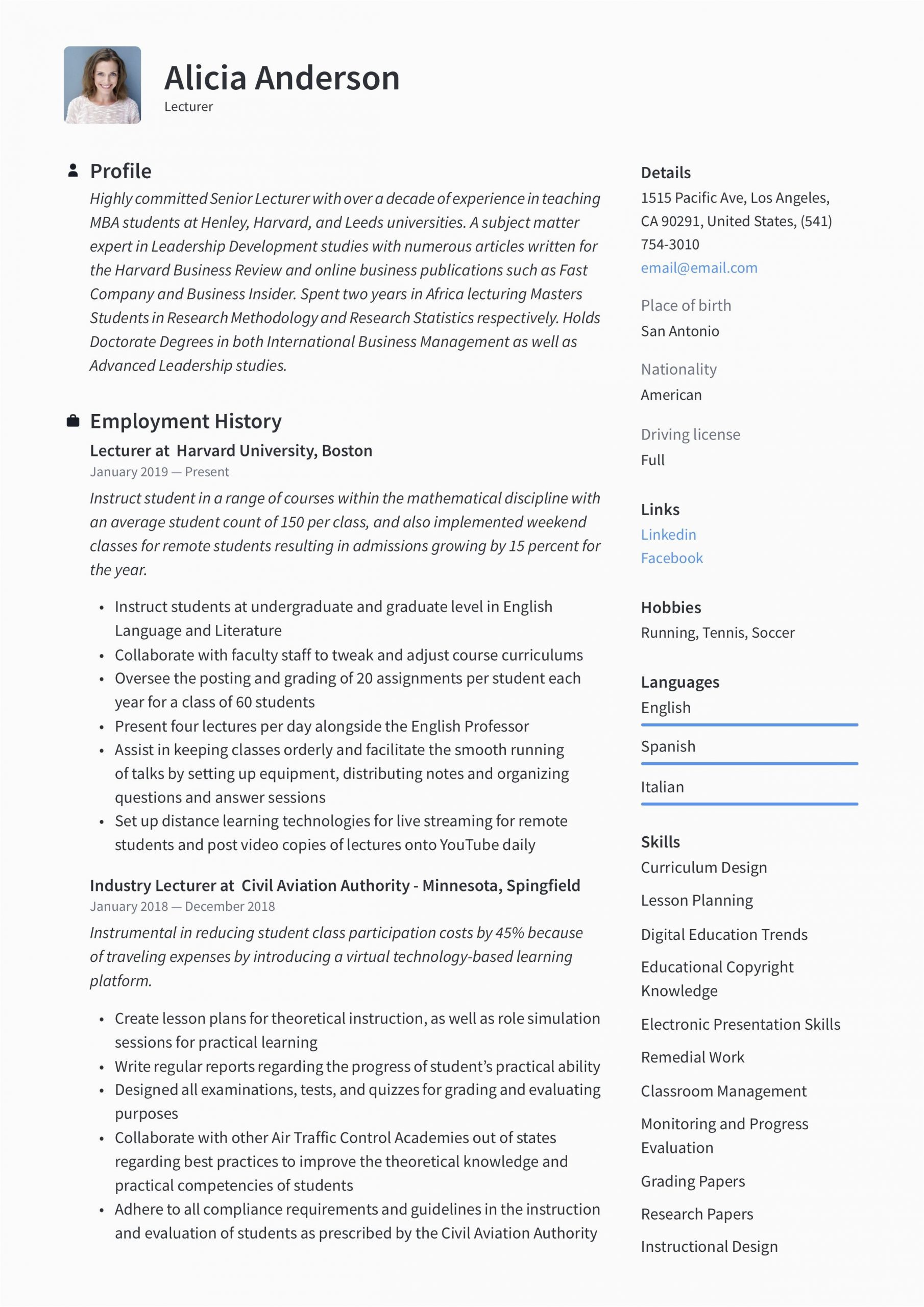 Lecturer Resume Template