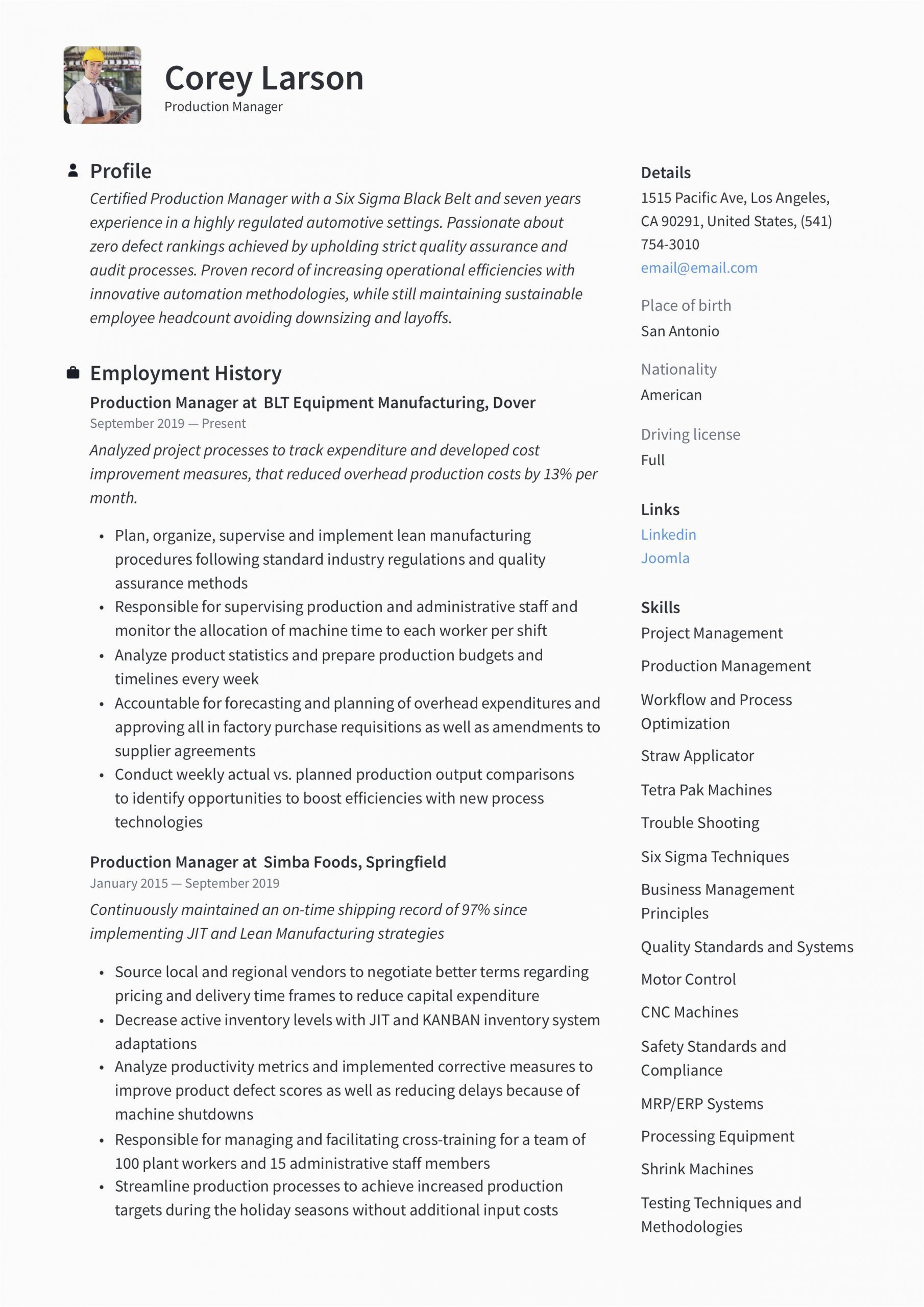 Production Manager Resume & Writing Guide in 2020