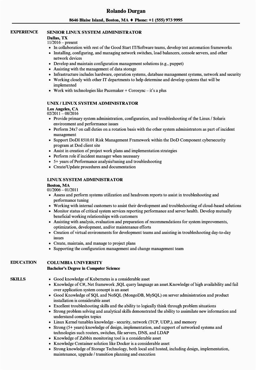 Linux Administrator Resume Sample for Experience Linux System Administrator Resume Samples and all other pictures, designs or photos on our website are copyright of their respective owners. we get our pictures from another websites, search engines and other sources to use as an inspiration for you. please contact us if you think we are infringing copyright of your pictures using contact page. we will be very happy to help you.
