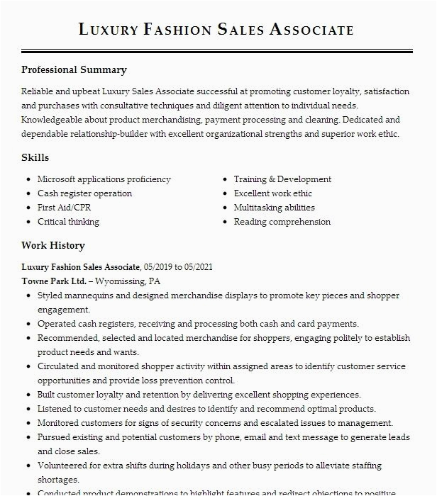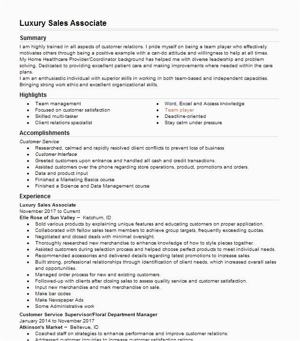 9 photos of the Luxury Retail Sales associate Resume Sample