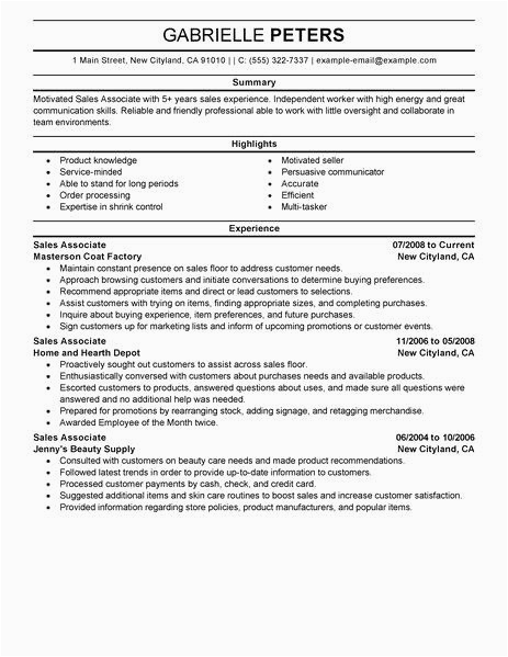 There will be many career books and guides that you can search out at the library or bookstore, which will have at least one macy s sales associate resume sample for you to study, oftentimes more.
