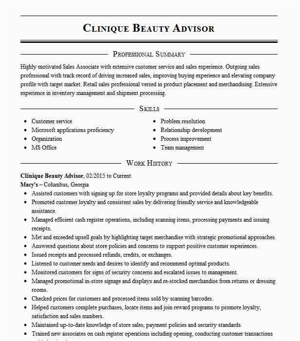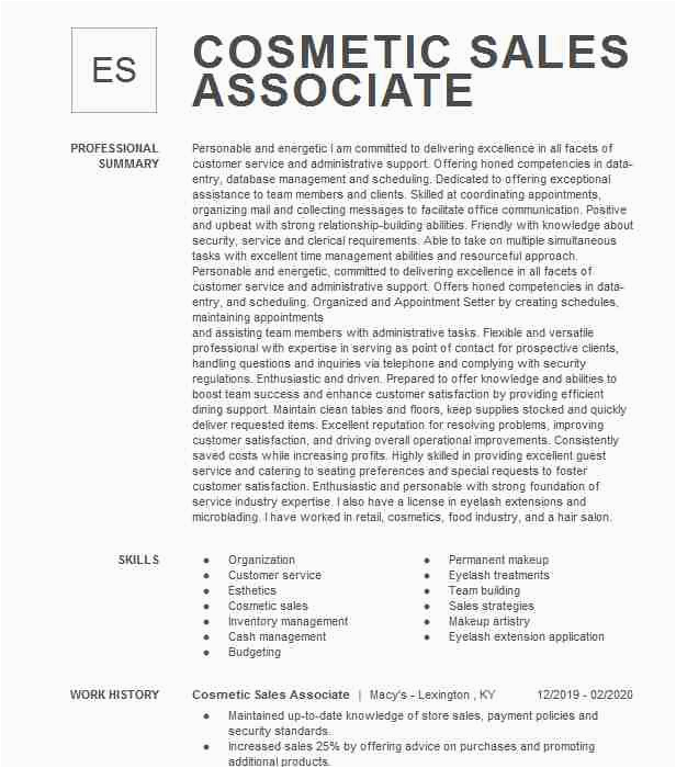 Cosmetic Sales Associate Resume Example Macy s Belton