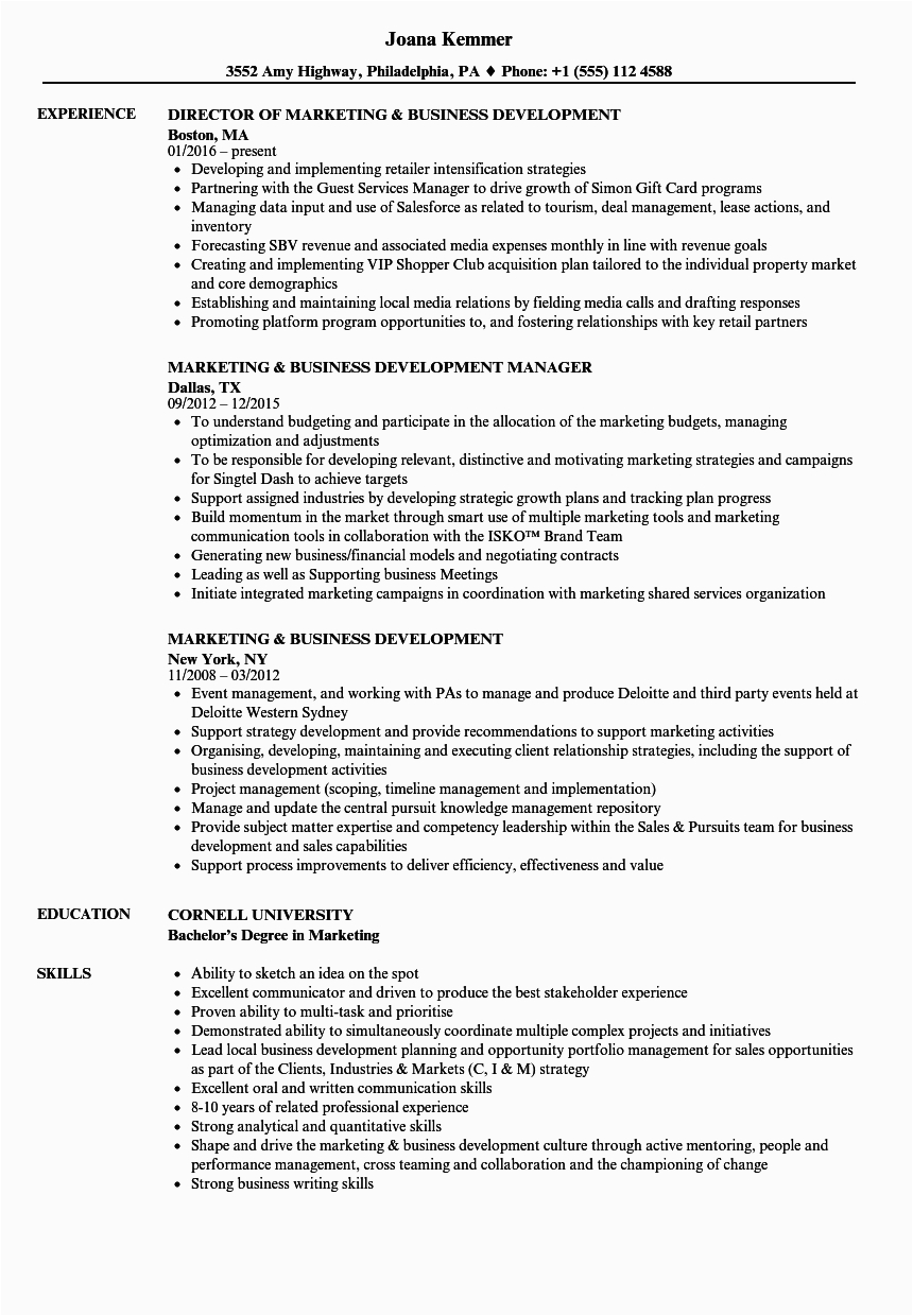 9 photos of the Marketing and Business Development Resume Sample