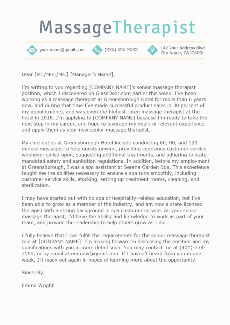 Massage Therapist Cover Letter Example and Writing Tips
