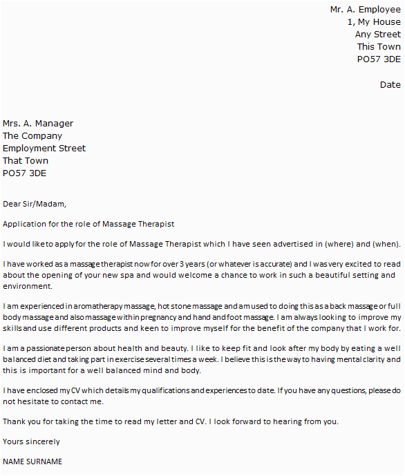 Massage Therapist Cover Letter Example icover