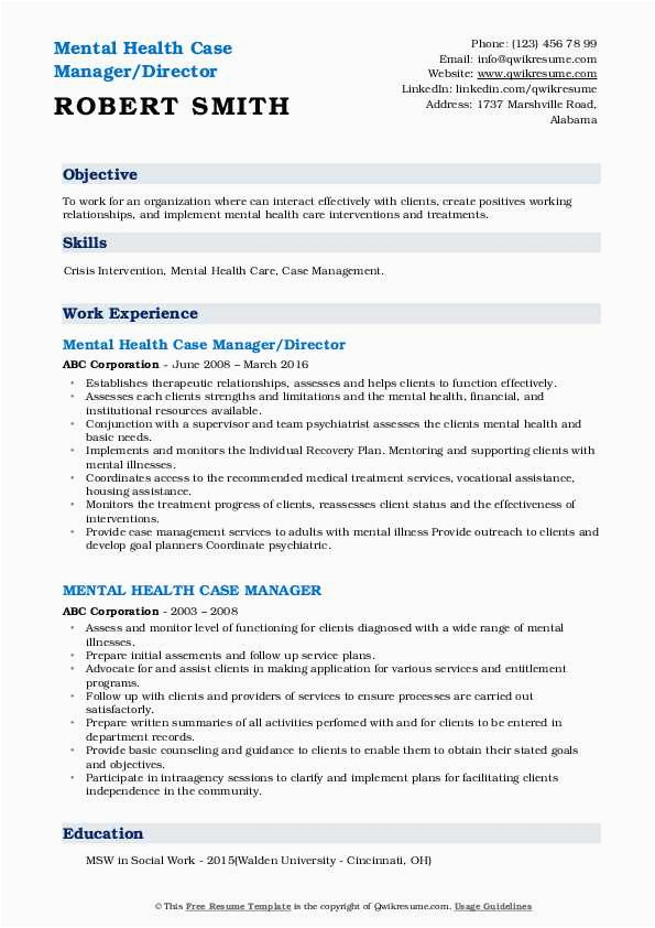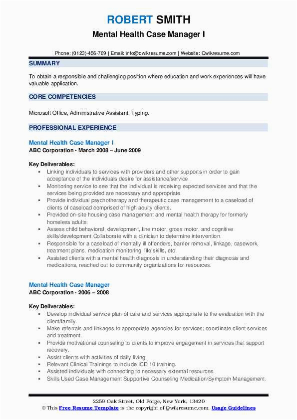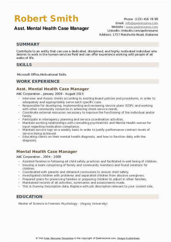 9 photos of the Mental Health Case Manager Resume Sample
