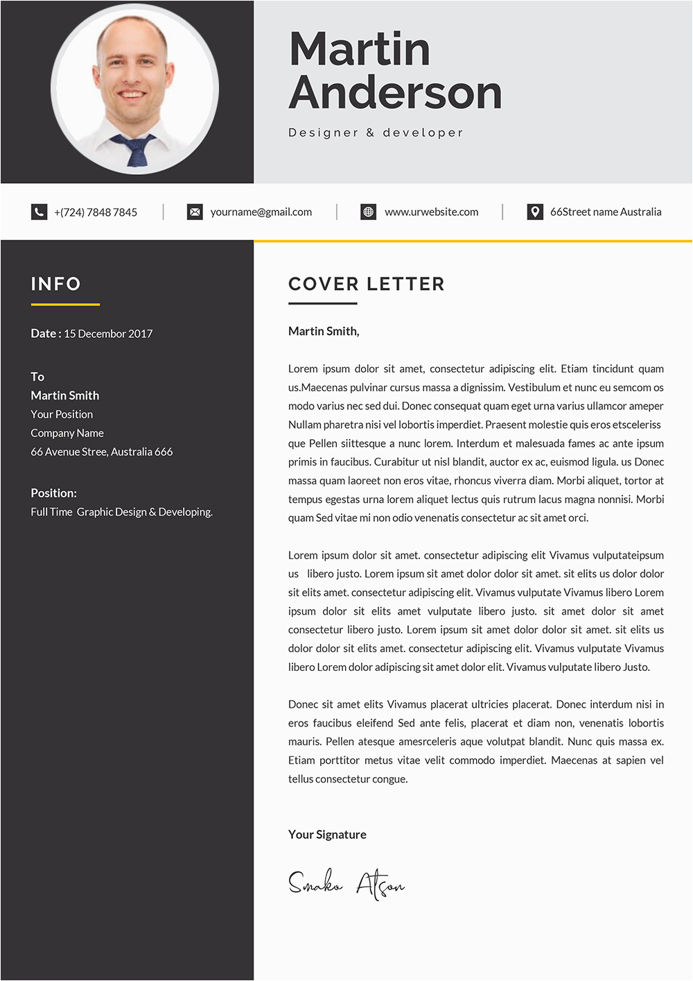 Modern Cover Letter Design Template Word Format