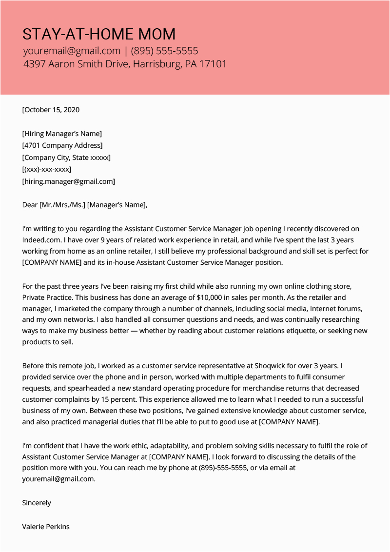 Sample Resume For Stay At Home Mom Returning To Work