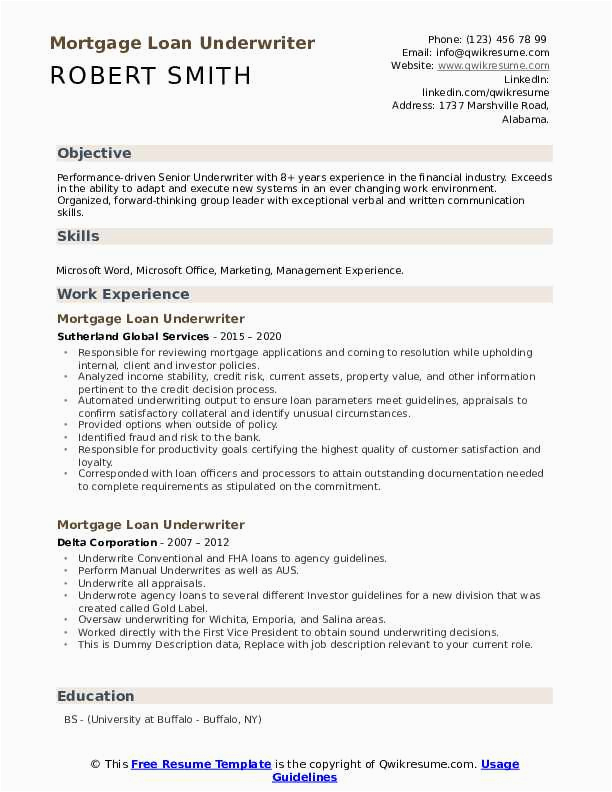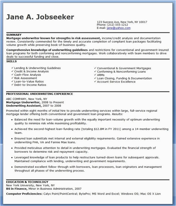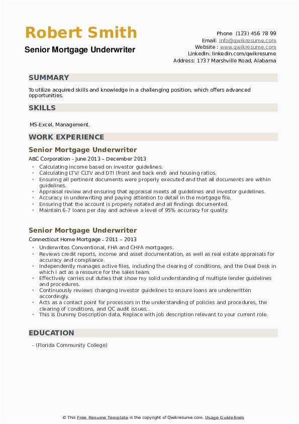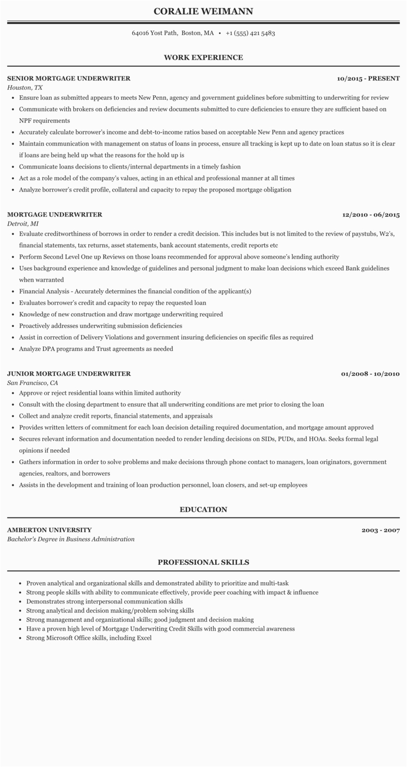 9 photos of the Mortgage Underwriter Sample Resume Damn Good Resumes