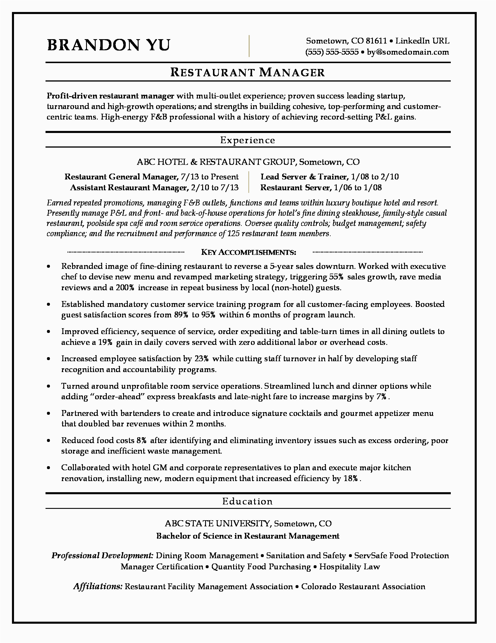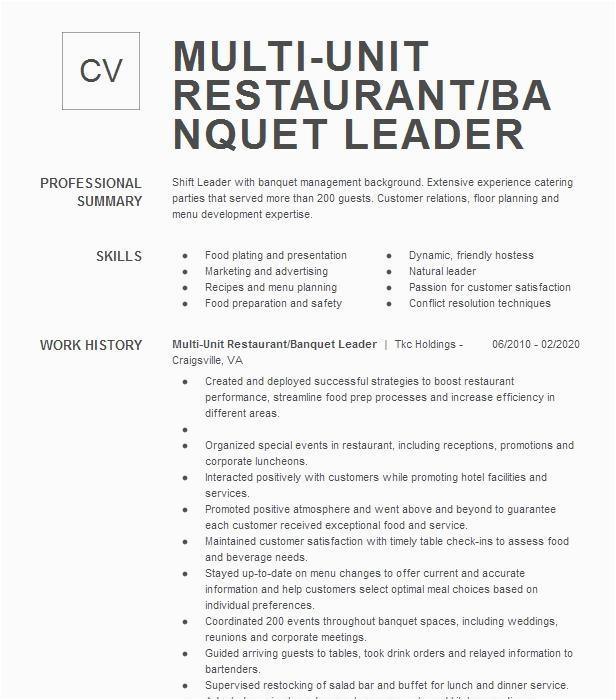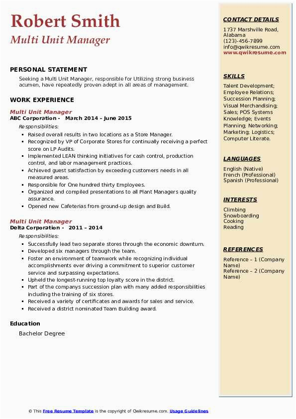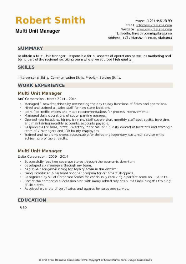 Back To Multi Unit Restaurant Manager Resume Sample