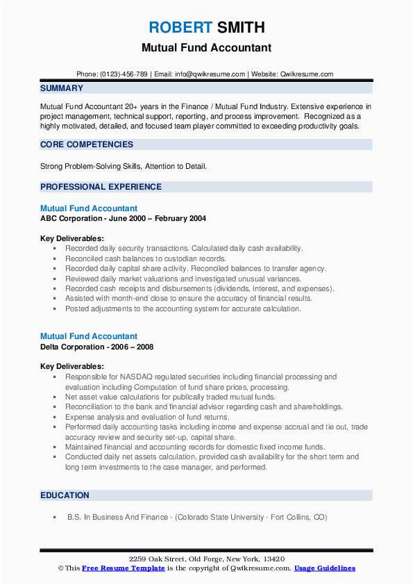 Mutual Fund Back Office Resume Sample Mutual Fund Accountant Resume Samples