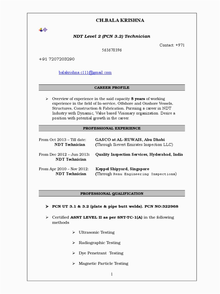 Gone you are searching for the perfect job, you will of course want to put your best foot forward bearing in mind an impressive and well-formatted resume. One habit of assuring that you have such a resume is to download a ndt level 2 fresher sample resume pdf. These templates can find the money for you subsequent to the true resume you are looking for or usefully use them as a guide to make your own.