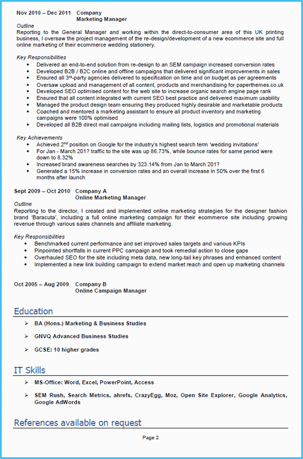 However, if you are a further graduate, you will want to list your learned achievements at the summit of the page, and next list your employment records and accomplishments.