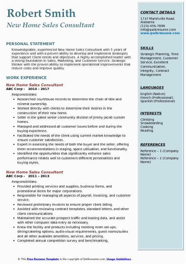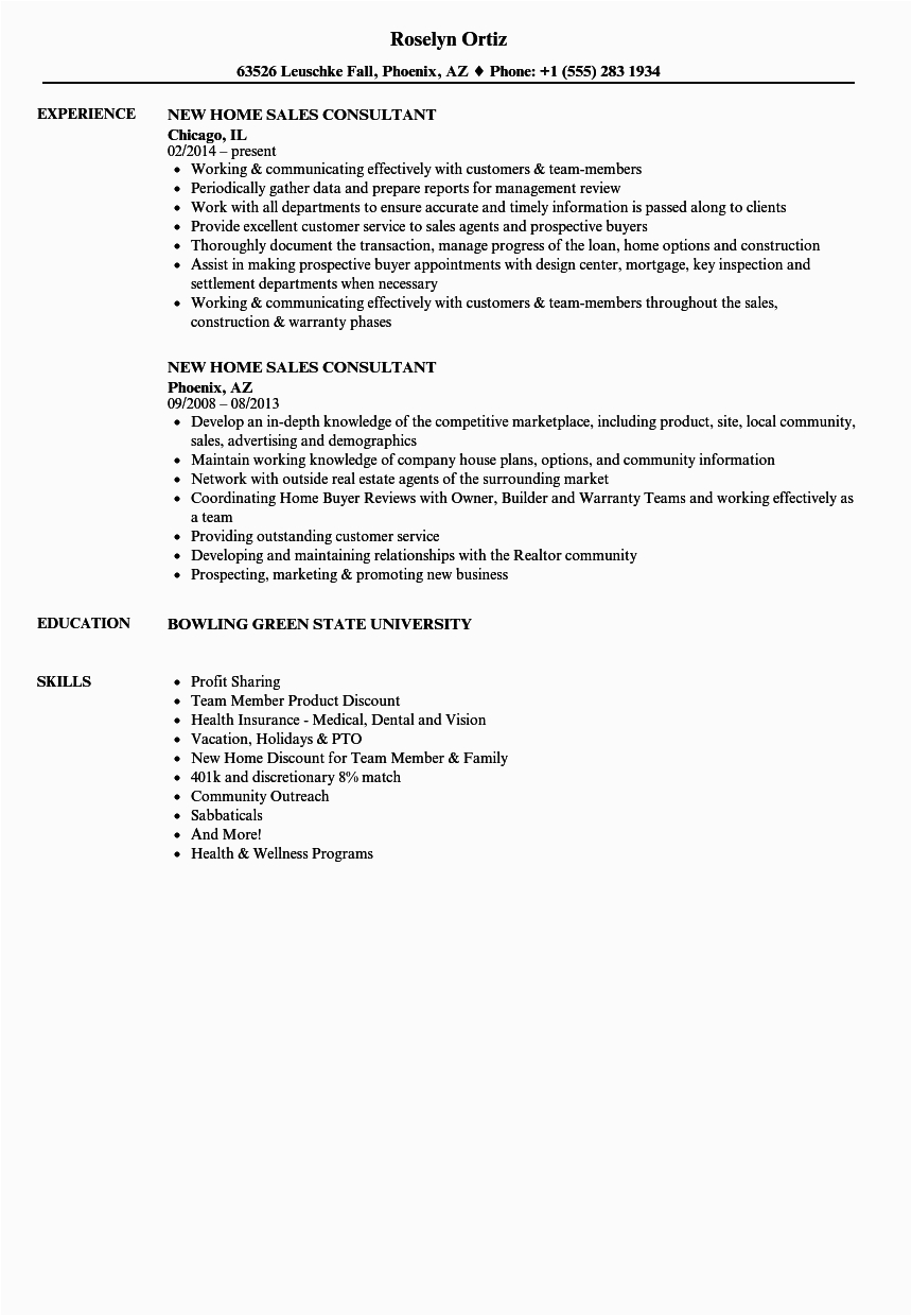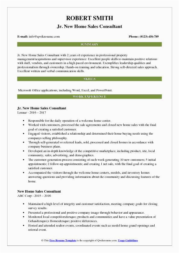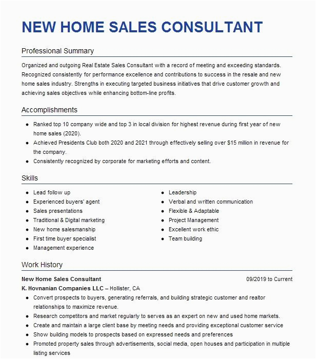9 photos of the New Home Sales Consultant Resume Sample