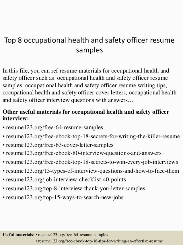 And for all website you arrive across that has a Occupational Health and Safety Officer Resume Samples, you will locate that there are specialized templates for just not quite any type of resume you hope to create. You can find a Occupational Health and Safety Officer Resume Samples for an entry-level position, and you can locate a template for just not quite any type of job or career you are looking for.