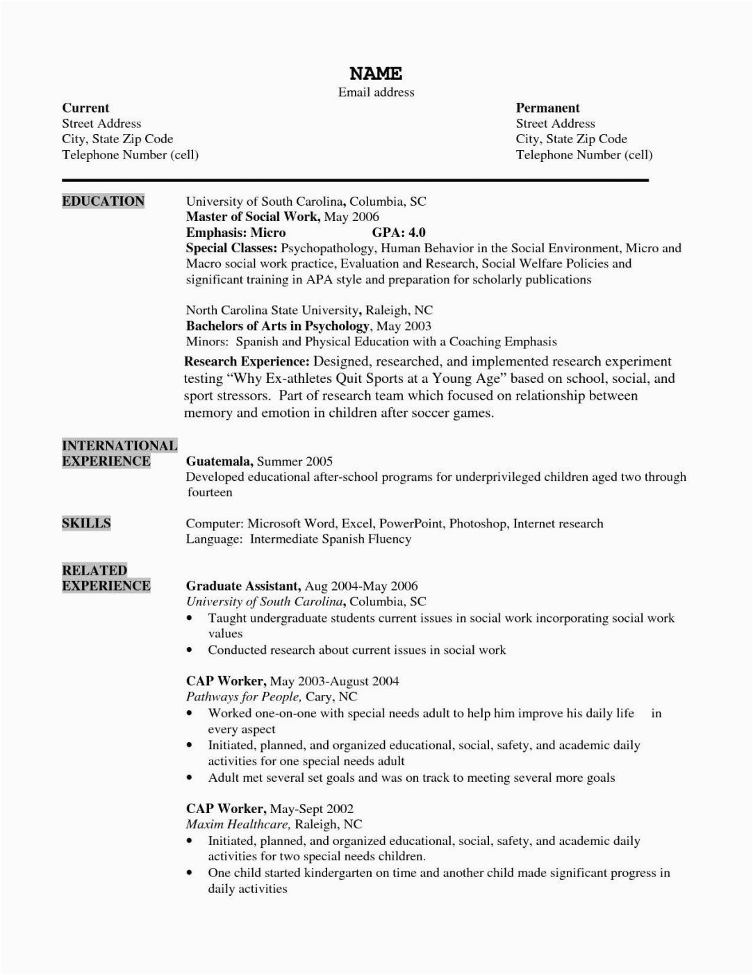 However, if you are a additional graduate, you will want to list your educational achievements at the top of the page, and subsequently list your employment history and accomplishments.