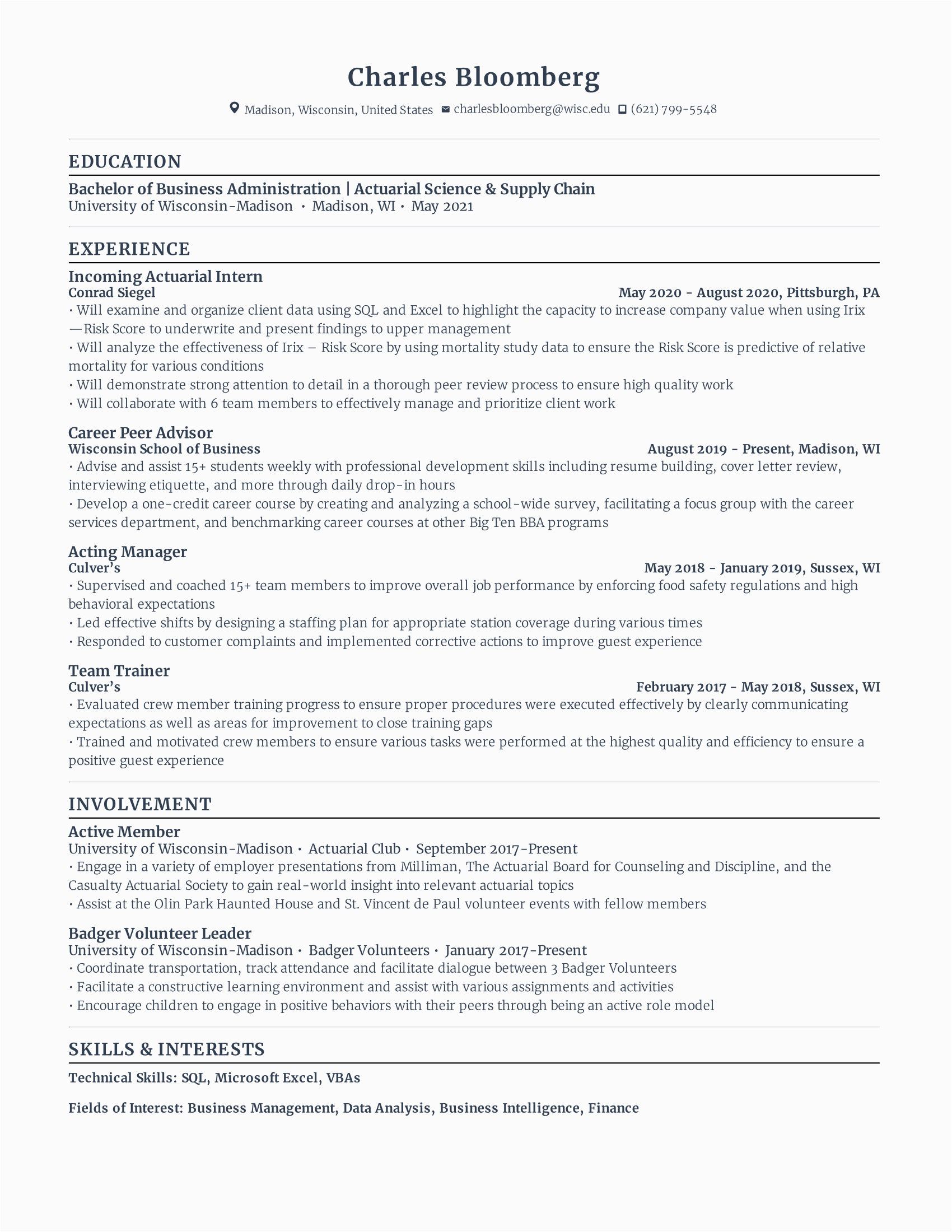 Back To One Page Resume Sample for Fresh Graduate