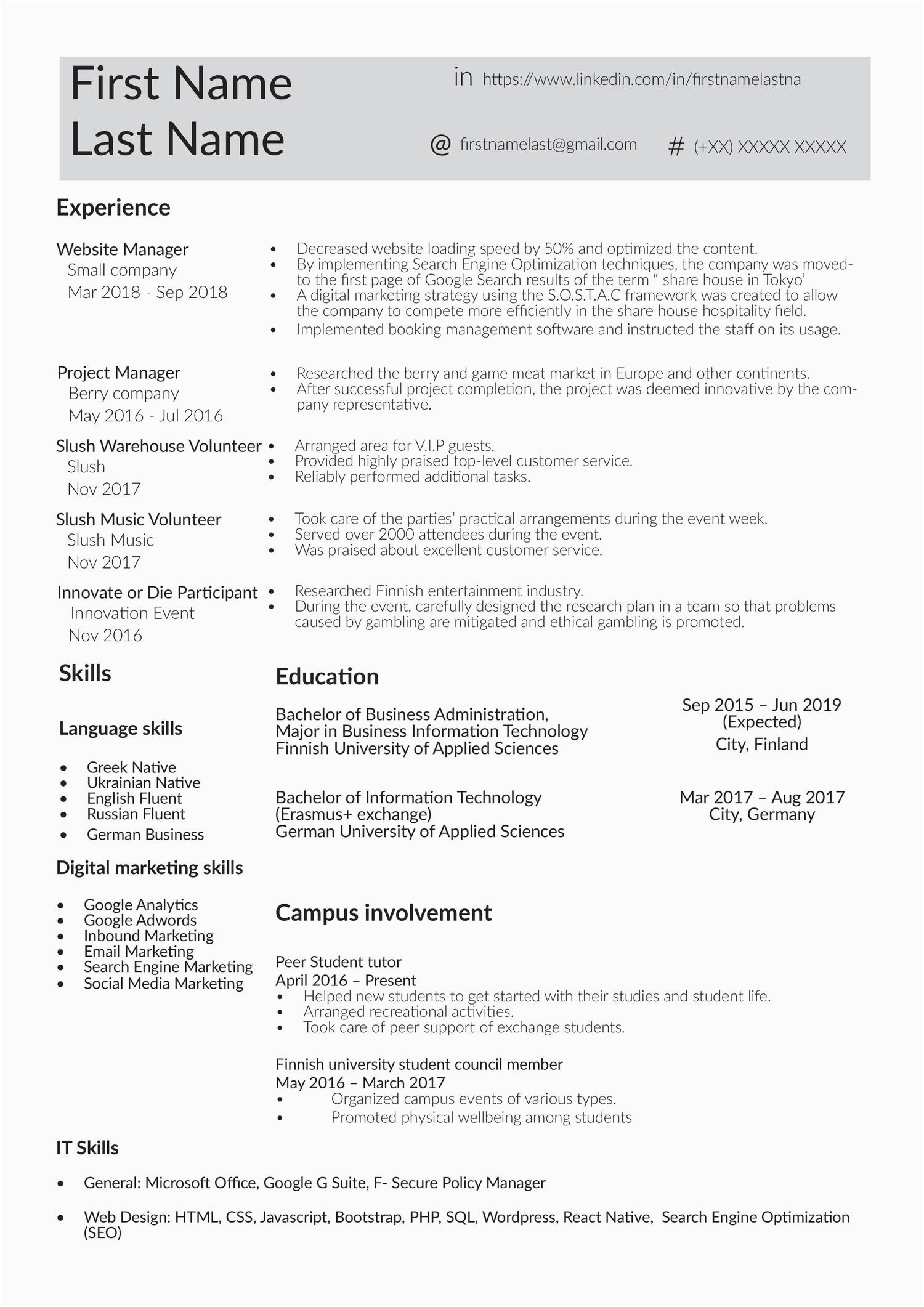 One Page Resume Sample for Fresh Graduate E Page Resume for Fresh Graduate and all other pictures, designs or photos on our website are copyright of their respective owners. we get our pictures from another websites, search engines and other sources to use as an inspiration for you. please contact us if you think we are infringing copyright of your pictures using contact page. we will be very happy to help you.