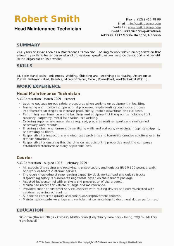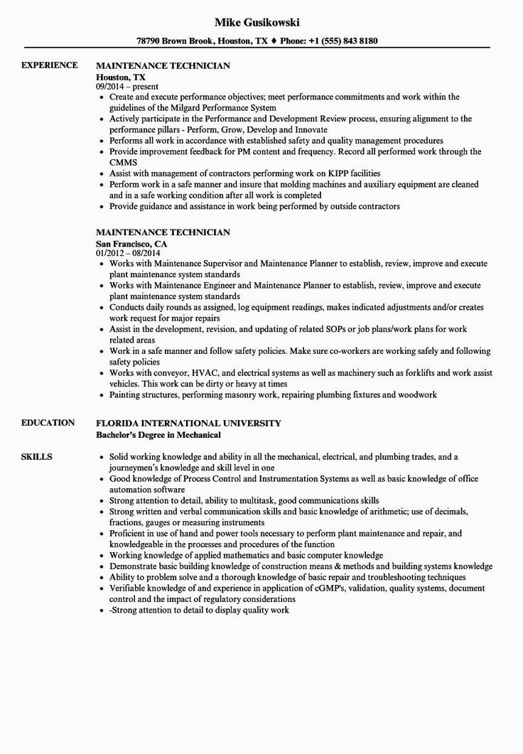 9 photos of the Operation and Maintenance Technician Resume Sample Monster