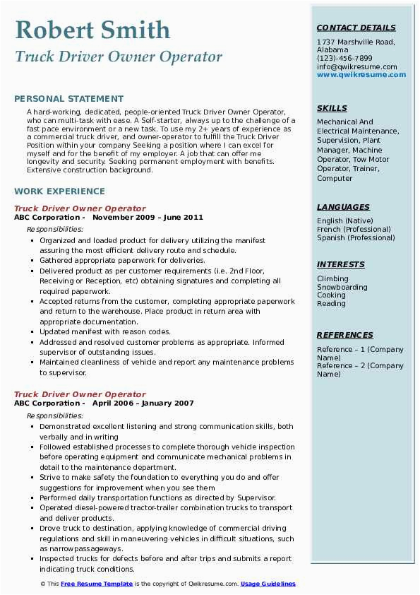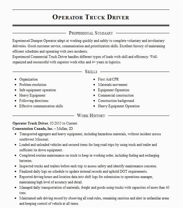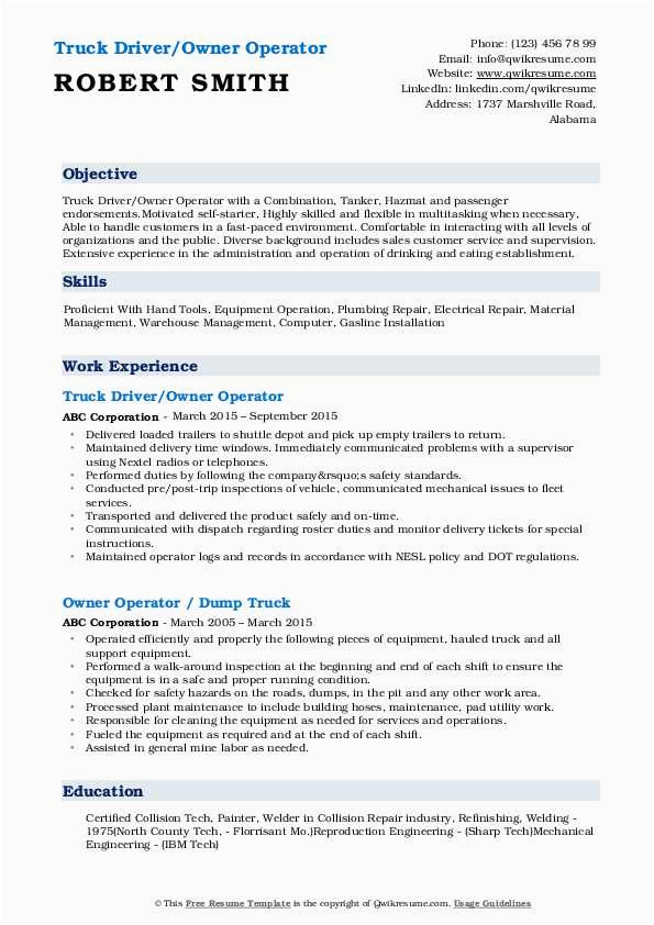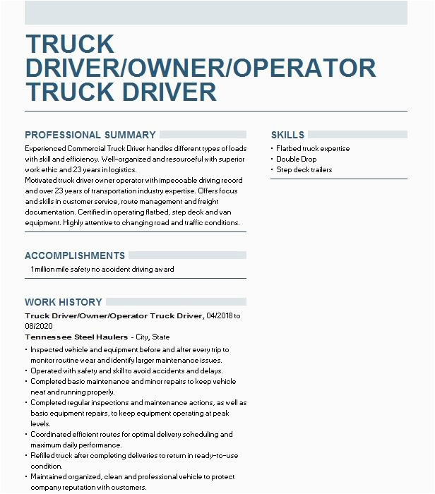9 photos of the Owner Operator Truck Driver Resume Sample
